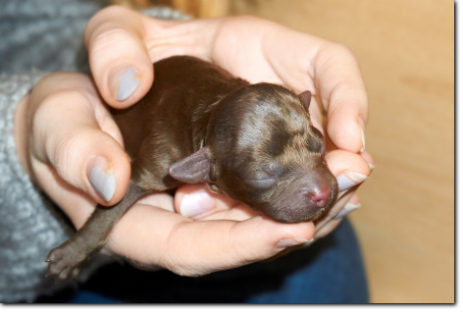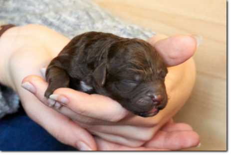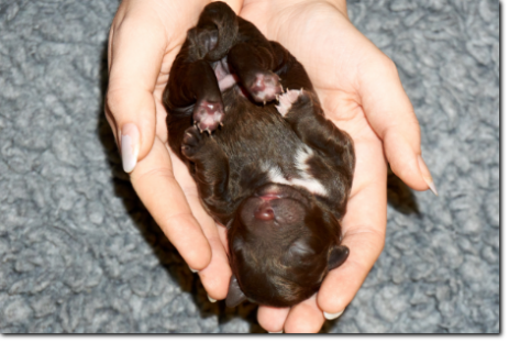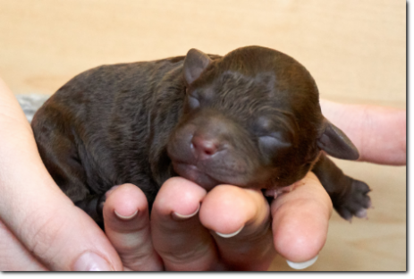 Der zumindest ansatzweise bunte D-Wurf ist am 3. Dezember 2018 leicht verfrüht aber ohne Probleme auf die Welt gekommen, sechs wie immer weitgehend braune Mädchen - keine Jungs.